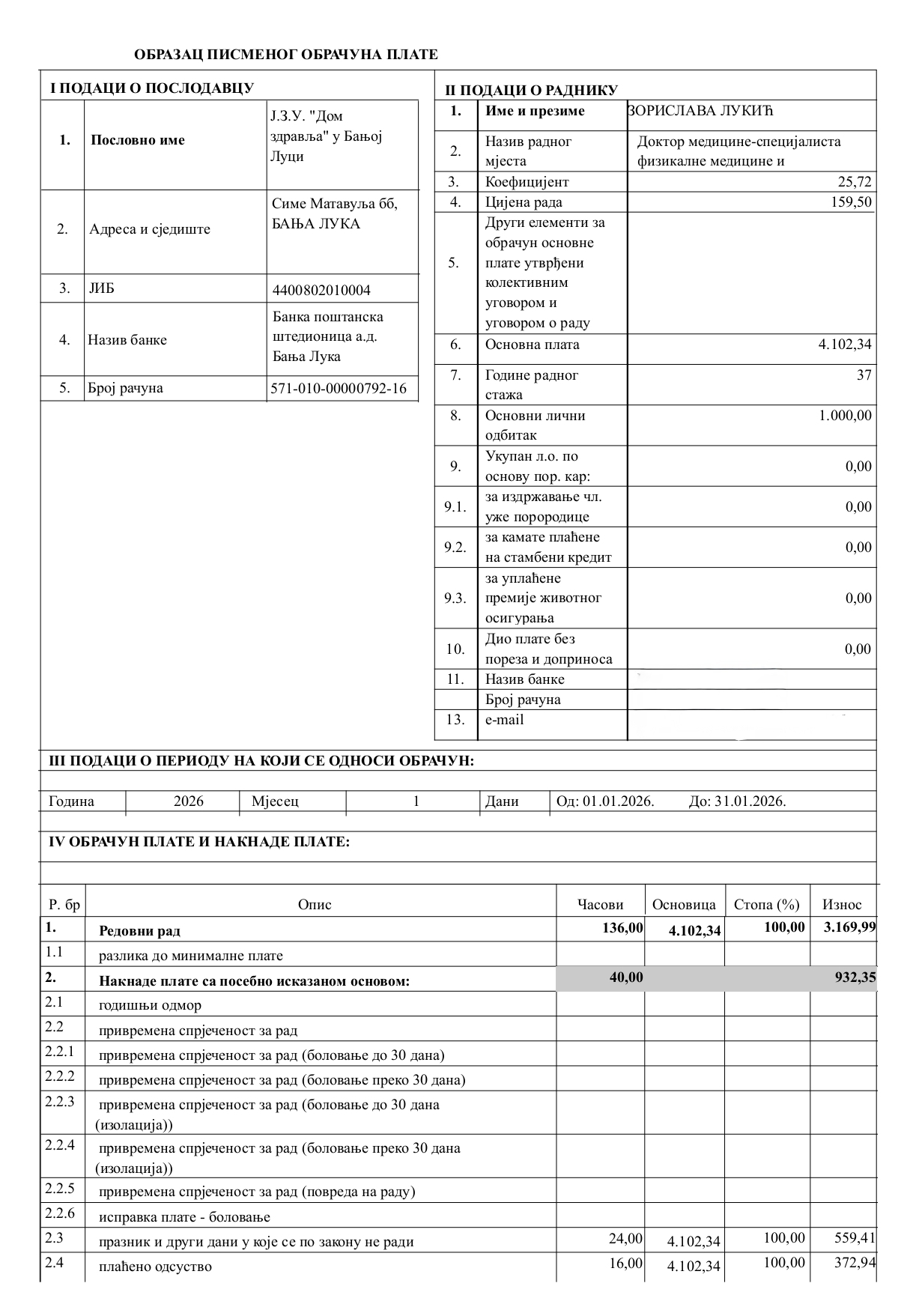 Kako su saopštili, neto plata dr Lukić, nakon obračuna svih zakonom propisanih poreza i doprinosa, iznosi 2.920,26 KM. Taj iznos, ističu u sindikatu, uključuje i naknade po osnovu minulog rada, toplog obroka i regresa, te naglašavaju da bi se njihovim izuzimanjem dobio stvarni iznos osnovne plate ljekara specijaliste.