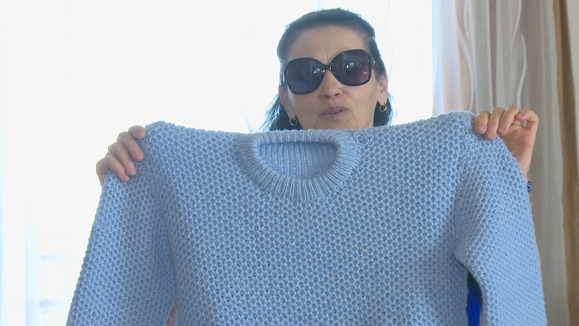 „Плетем чарапе, папе, прслуке, мајице. Највише волим да плетем са неким мустрама, да то није чисто. Кад сам узела и кренула да плетем, не видим, али некако сам се у то уклопила као да то радим читав живот. Чини ми се кад бих видјела, ја бих тек онда гријешила", каже она.